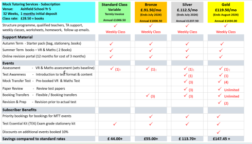 commitment of a school term. See subscription costs below. (Plus starter pack (books) and summer books)