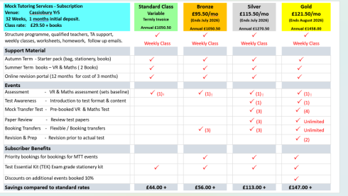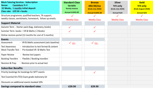 For parents of students at other schools, Mock Transfer Tests offer alternative classes, see General Enrolment form.