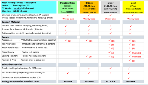 For parents of students at other schools, Mock Transfer Tests offer alternative classes, see General Enrolment Form.