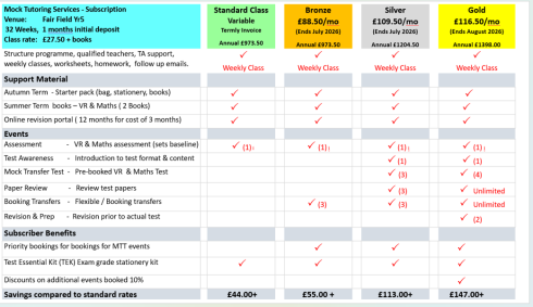 For parents of students at other schools, Mock Transfer Tests offer alternative classes, see General Enrolment form.