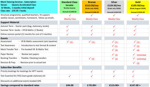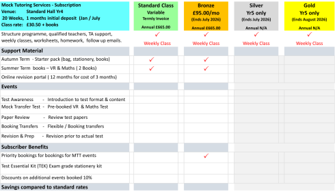 Please register using the following link, you will then be given access to the various class information, costs and payment options.Link to: Tutoring Services